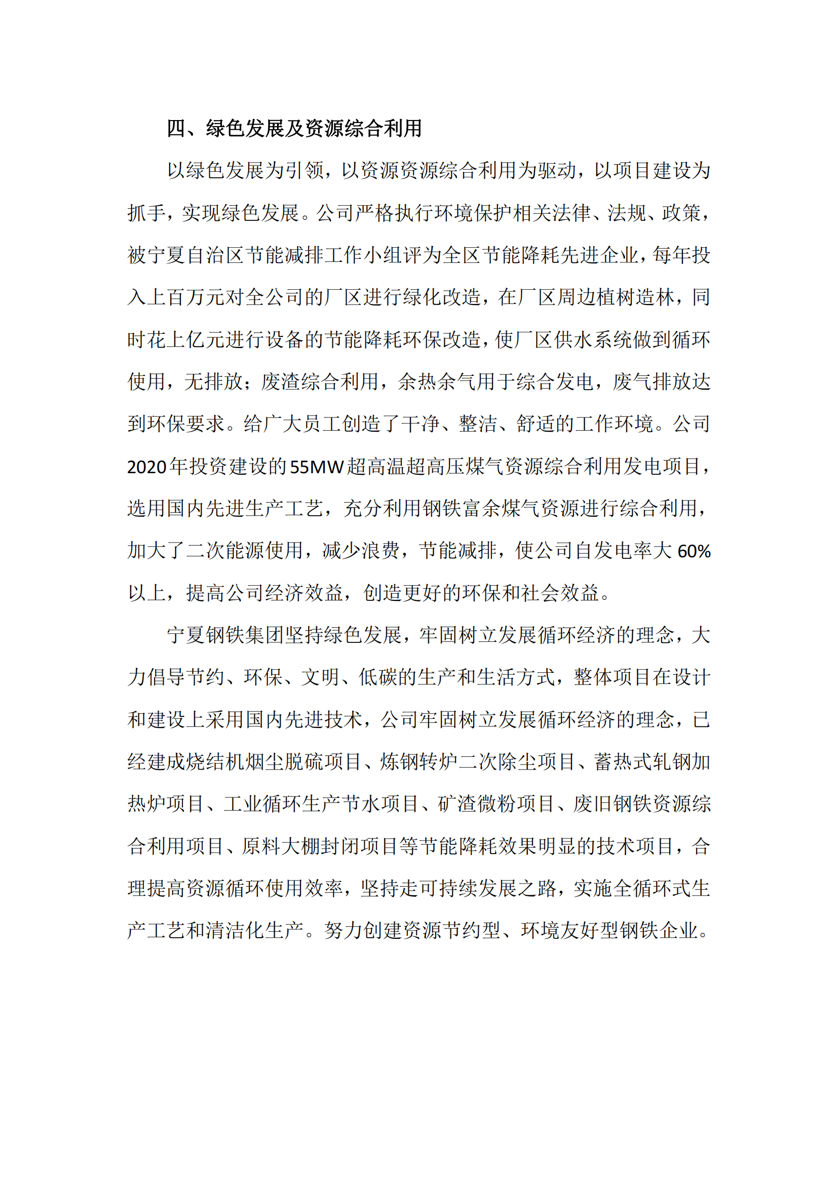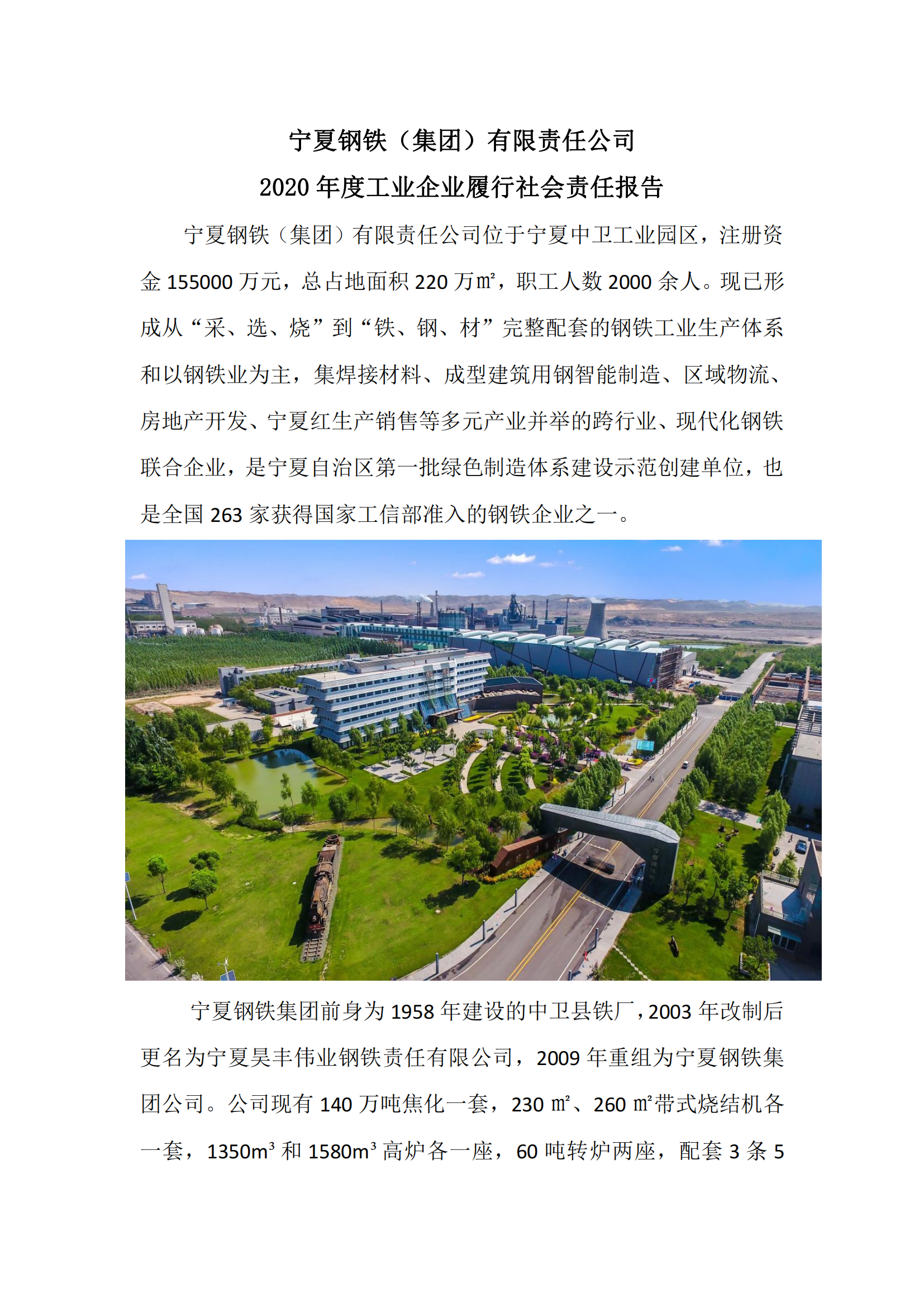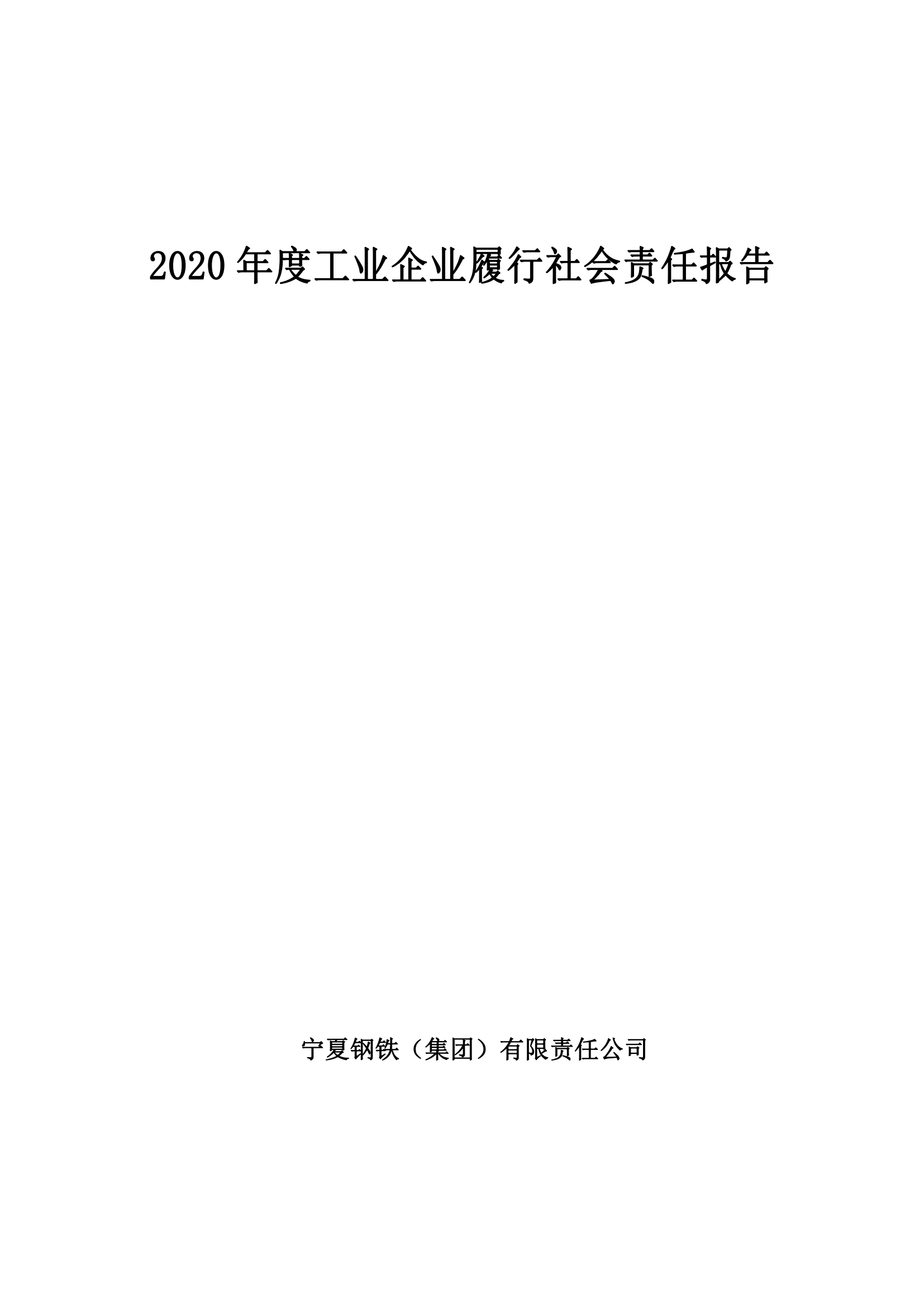 寧夏鋼鐵(集團)有限責(zé)任公司2020年度工業(yè)企業(yè)履行社會責(zé)任報告